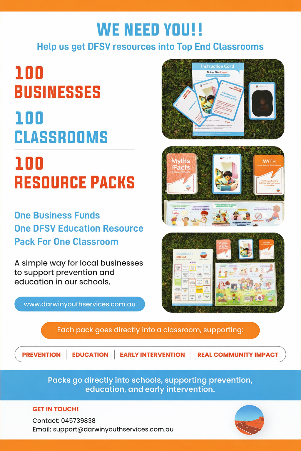 Packs go directly into schools, supporting prevention, education, and early intervention.