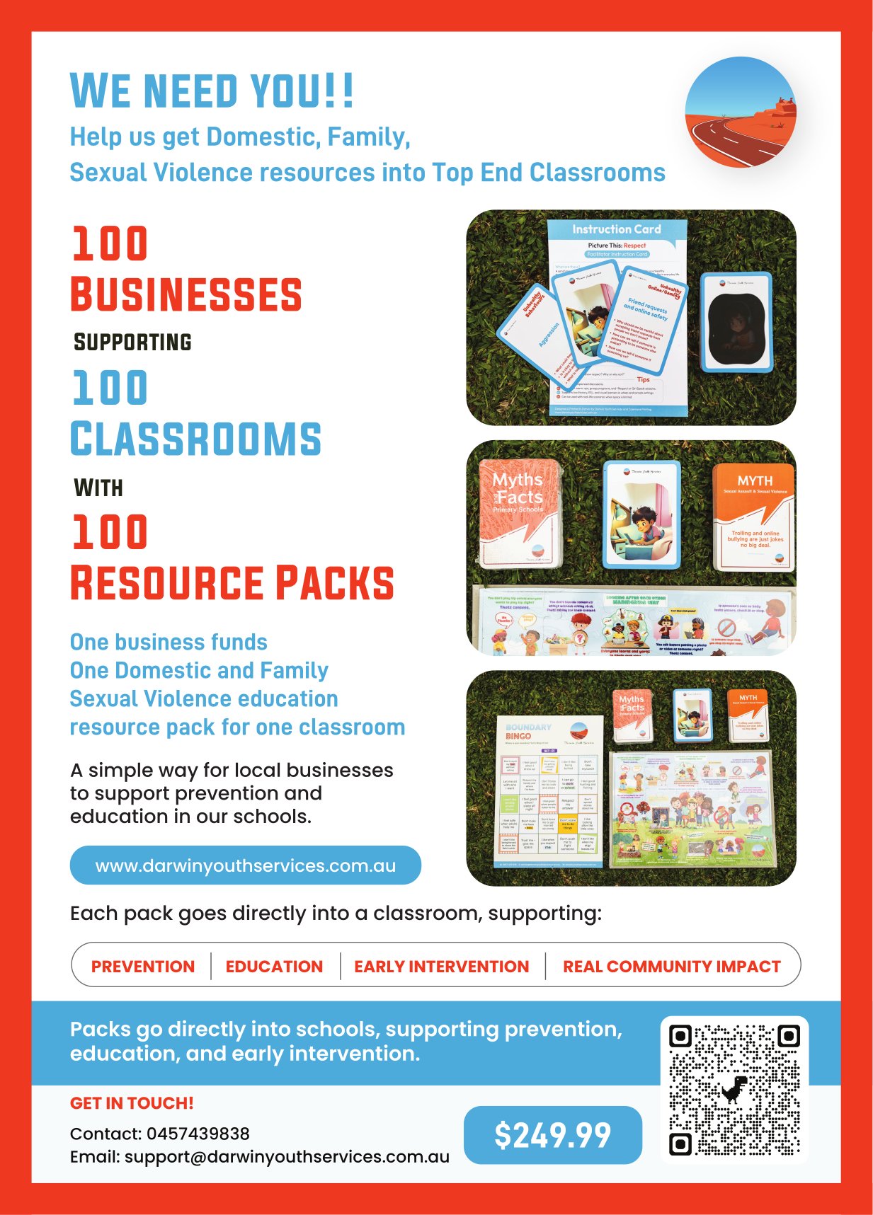 For $249, your business can fund a classroom by placing a practical DFSV education resource pack directly into a Northern Territory school, giving young people real tools to understand respect, boundaries and healthy relationships.